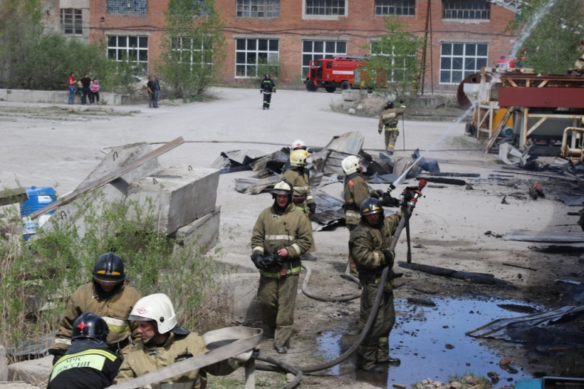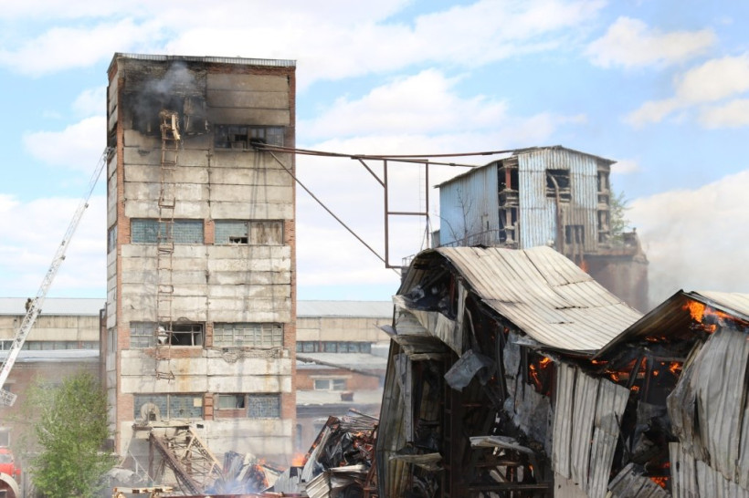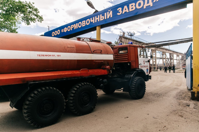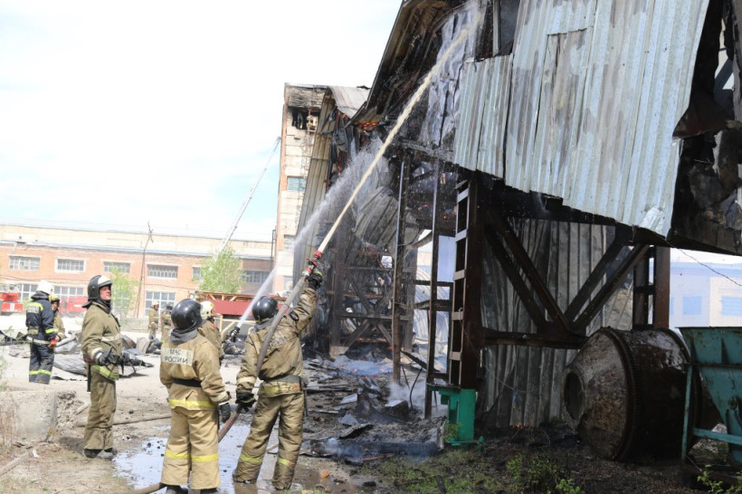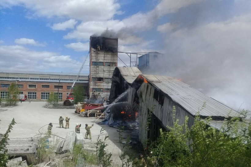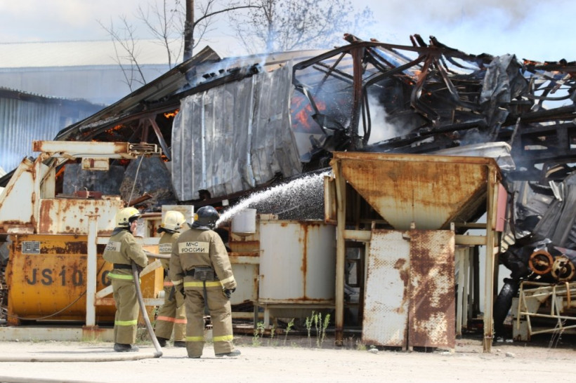 В Благовещенске горит формовочный завод железобетонных изделий (фото и 4 видео)