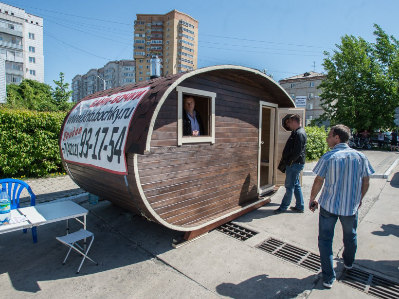 — Это баня в бочке. Мы уже пять лет продаем их на Дальнем Востоке, — рассказал представитель компании «Бани-бочки» Юрий. — Как видите, она подцепляется краном и устанавливается, куда вам удобно. Баня мобильна, ее можно перевезти в любой момент.