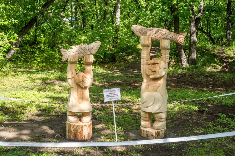 «Профессиональные художники Алексей Сидоров и Виктор Кузнецов создали деревянную скульптурную композицию «Рыбаки», — рассказала специалист по связям с общественностью управления культуры Екатерина Касимова. — При чем вложили в нее глубокий экологический смысл о правильном отношении к водным ресурсам. Рыболовы бережно держат свой улов в руках, а не на крючке или в сети. Остальные шесть команд — любительские, одна из них даже приехала в Благовещенск из Тамбовки. Конкурс парковых скульптур проходит в столице Приамурья впервые, автор проекта — преподаватель благовещенской художественной школы Елена Новикова, которая победила в конкурсе муниципальных грантов в сфере культуры и искусства».
