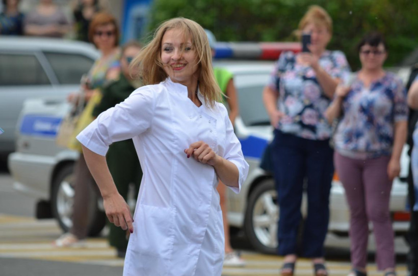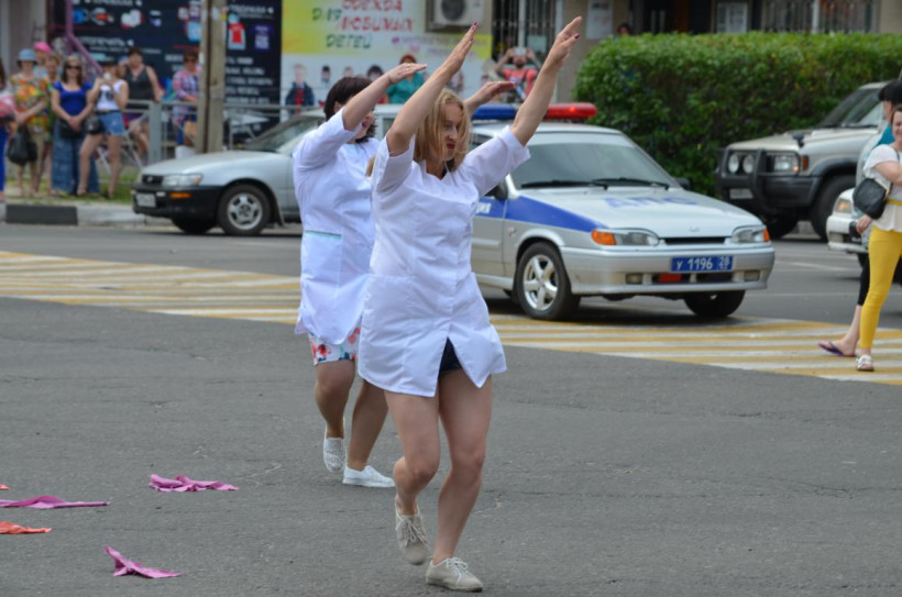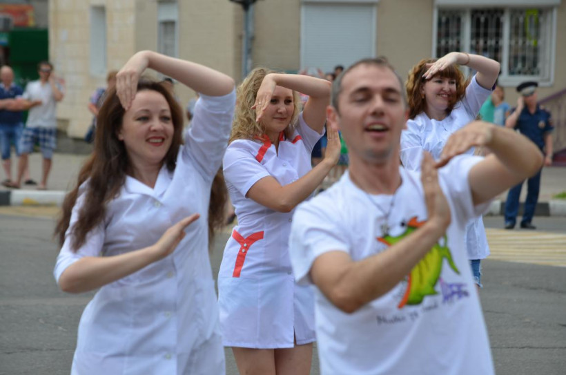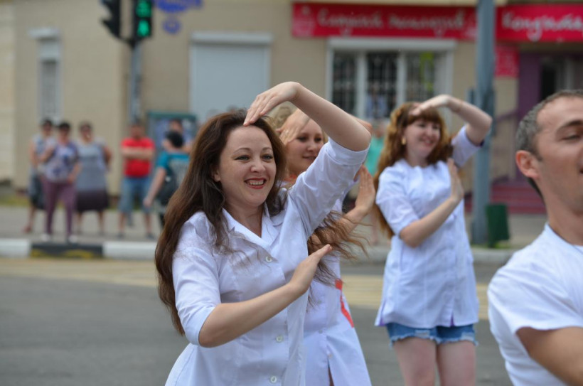 Безопасность танцевального флешмоба на трехфазном перекрестке обеспечили сотрудники ГИБДД. Несколько сотен жителей и гостей Белогорска в течение четырех минут наслаждались танцем медработников под песню «В состоянии шока», сообщает пресс-служба мэрии.