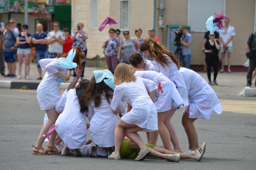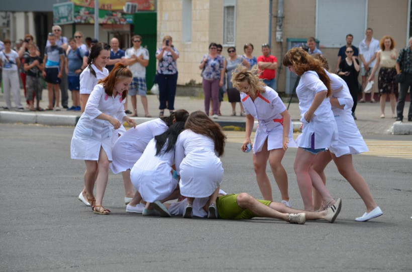 Необычную картину увидели 16 июня жители Белогорска на одном из оживленных перекрестков города. На пересечении Кирова и Скорикова сознание потерял молодой человек. К нему на помощь подъехали две медицинские бригады. Люди в белых халатах спасли горожанина, а потом исполнили «победный» танец.