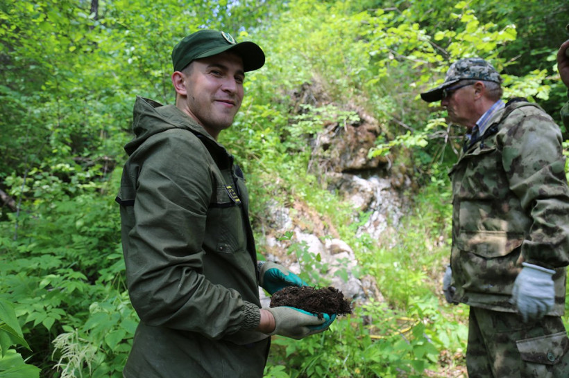 В числе «переселенцев» — папоротники вудсия многорядниковая и многорядник укореняющийся, а также цветковые растения — селезеночник ложнофари и траутфеттерия японская. Специалисты аккуратно вынимают эндемики с кусками дерна и мха, укладывают в корзины.