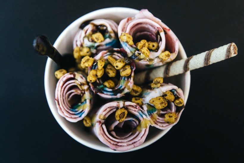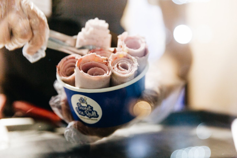 Делается тайское мороженое на глазах покупателя — это своеобразное представление, добавляющее ценности продукту. Клиент выбирает вид мороженого и начинку. Кондитер-продавец растирает ингредиенты в тонкий блин на сковородке-холодильнике, а затем специальным скребком собирает его в роллы.