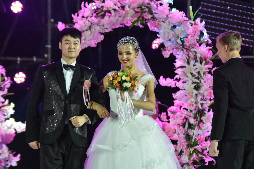 Изюминкой программы стала большая китайско-русская свадьба, когда по сцене прошли смешанные пары.