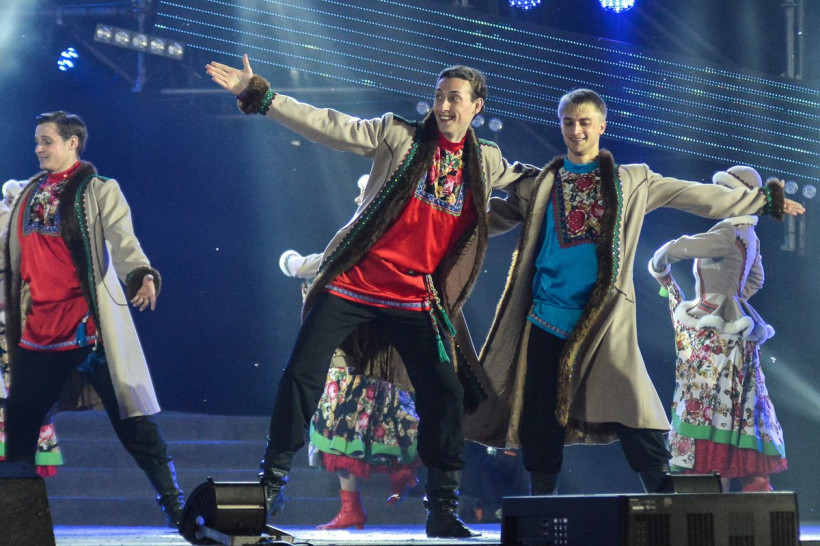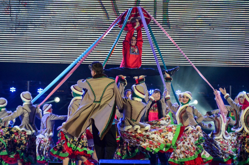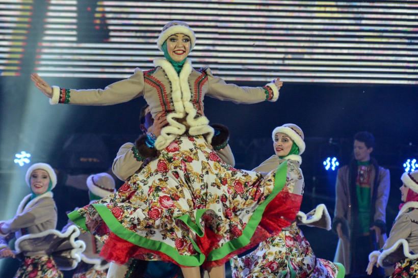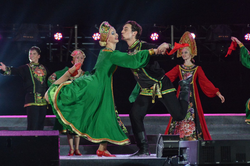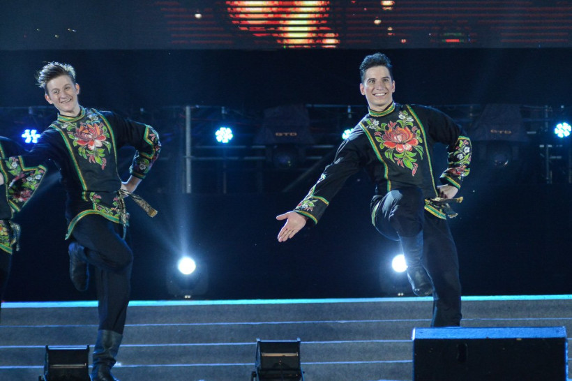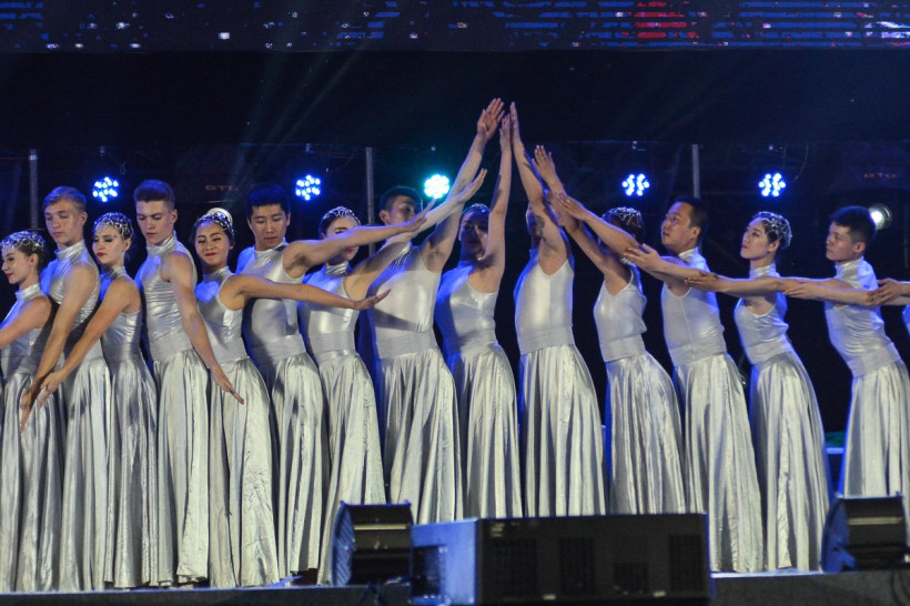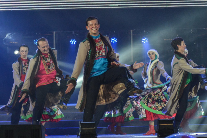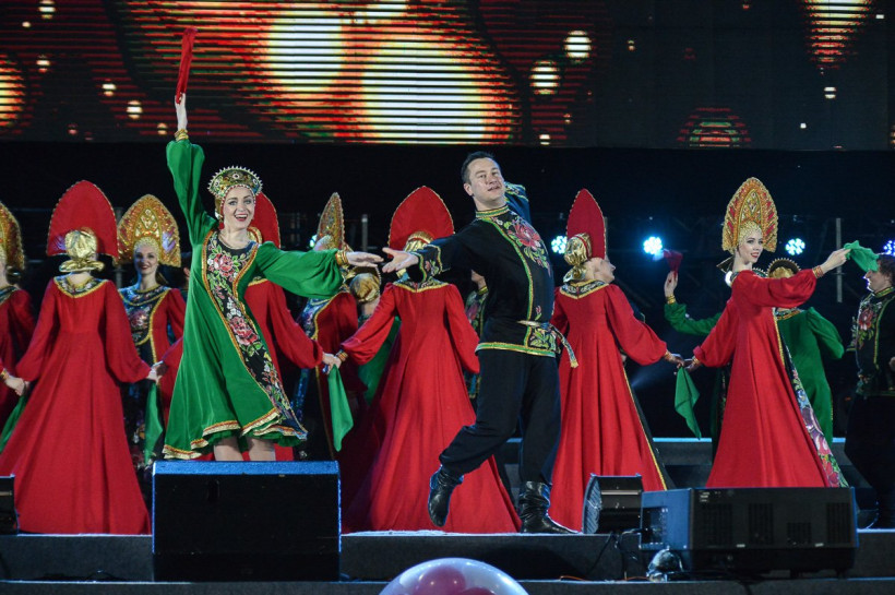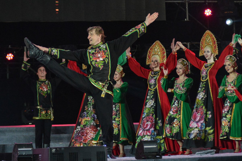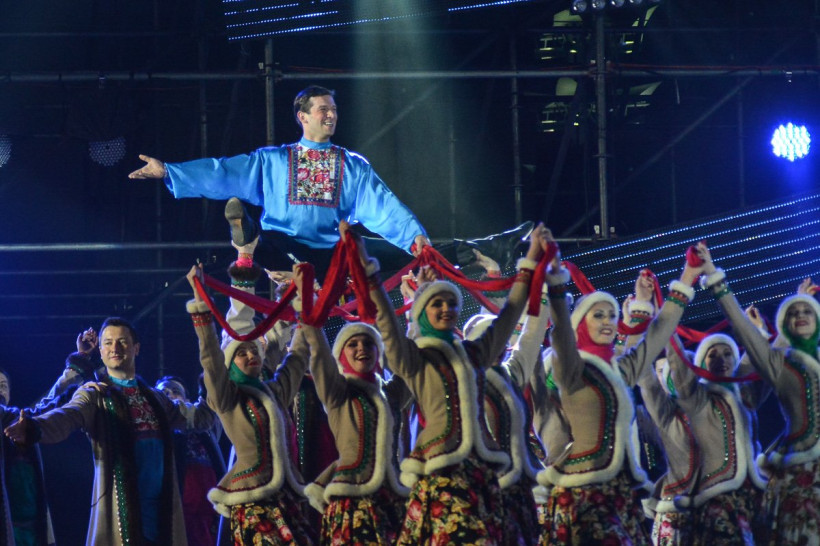 Гвоздем концерта стало выступление двух легендарных коллективов — Московского государственного академического театра танца «Гжель» и Пекинского национального ансамбля песни и танца.