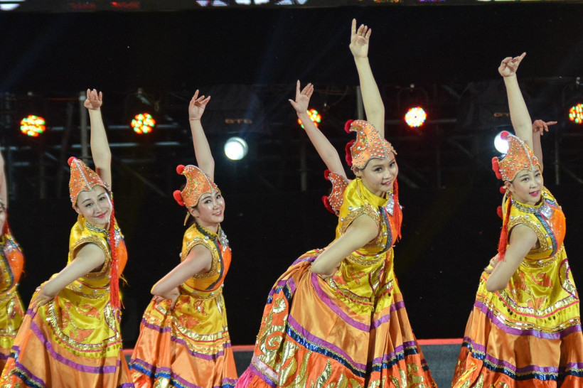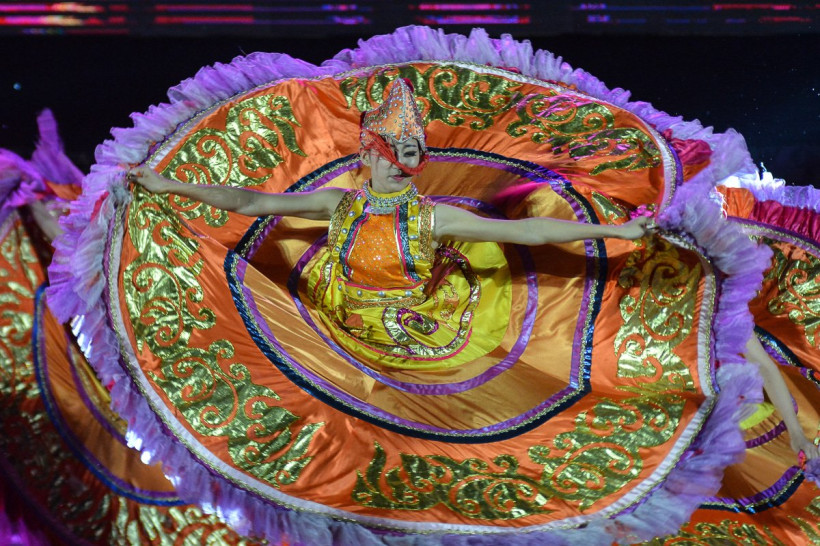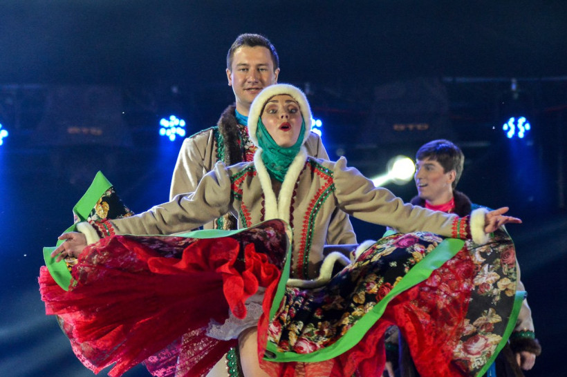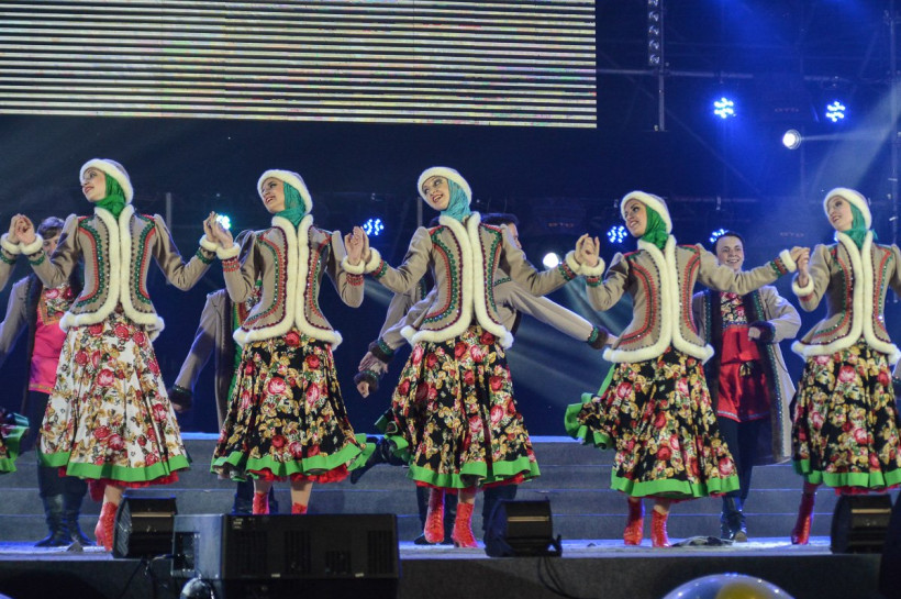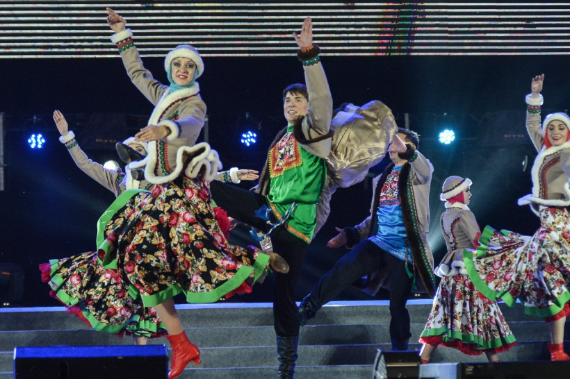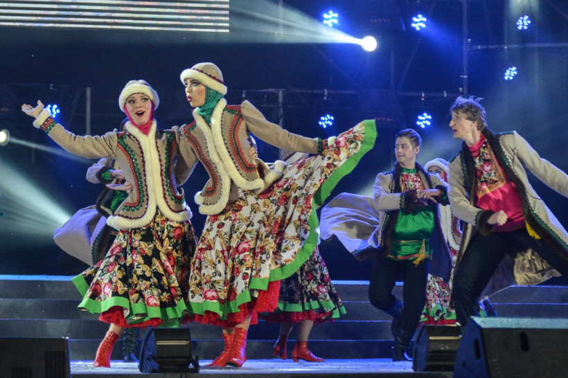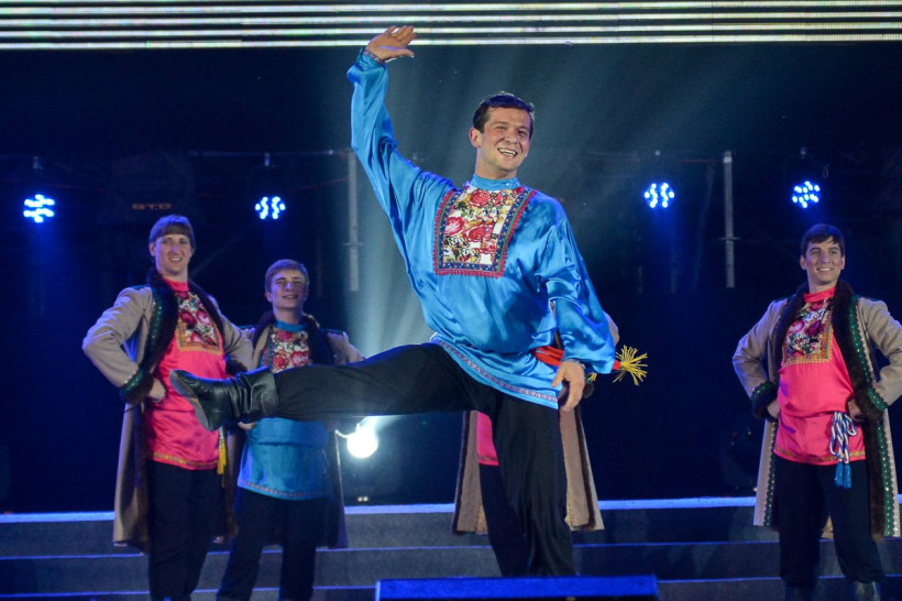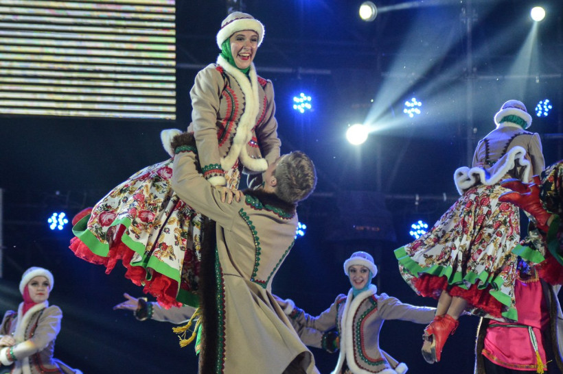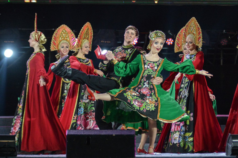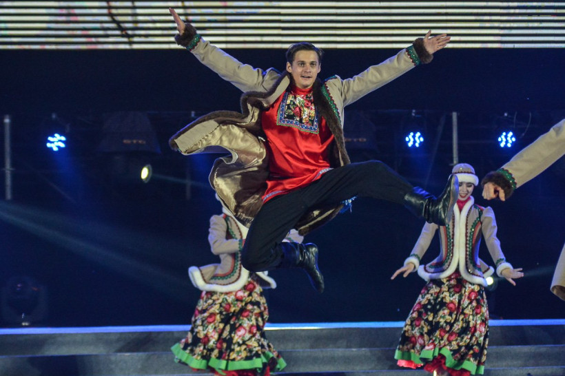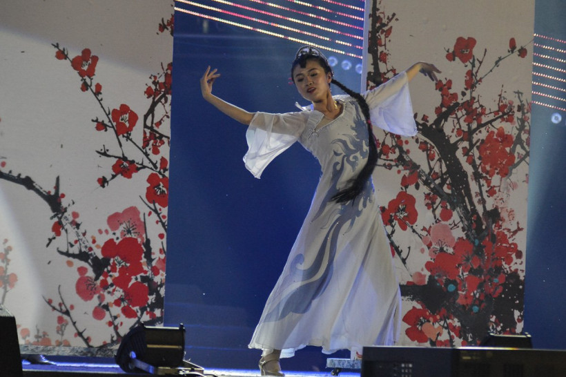 Гвоздем концерта стало выступление двух легендарных коллективов — Московского государственного академического театра танца «Гжель» и Пекинского национального ансамбля песни и танца.