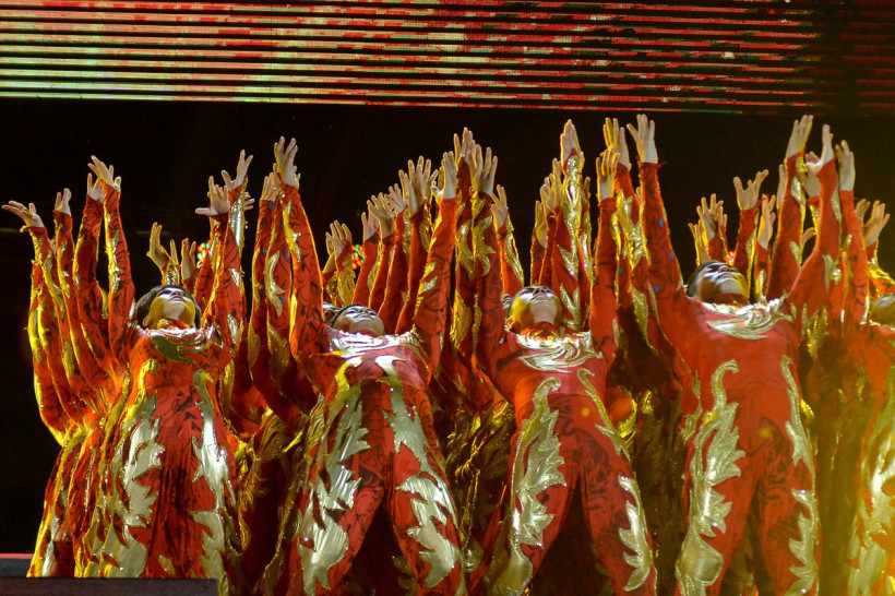 За почти сказочным действием под открытым наблюдало несколько десятков тысяч китайцев.