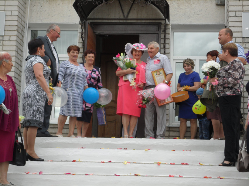 Супруги Маркусенко из Архары на пенсии сыграли вторую на своем веку свадьбу. Так Вера Марковна и Леонид Герасимович отметили 50-летие совместной жизни. Торжественная церемония проходила в районном отделении ЗАГСа. Супруги вошли в зал регистраций под марш Мендельсона. 71-летняя невеста надела розовое платье и шляпку с фатой в тон наряду.