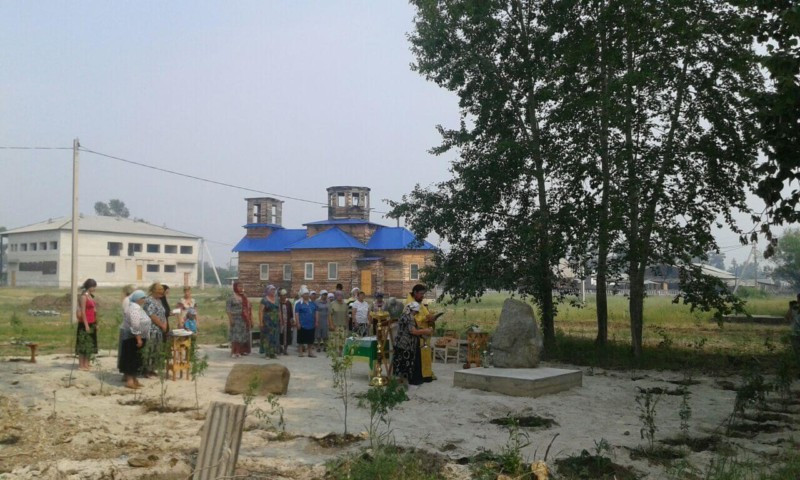 Около памятного камня с керамической иконой покровителей семьи и брака совершил молебен иерей Владимир Мыльников. На молебен приехали паломники из Зеи, пришел глава сельской администрации Дмитрий Чичик. После окропления памятника святой водой батюшка вместе с верующими читал канон благоверным князю Петру и княгине Февронии Муромским.