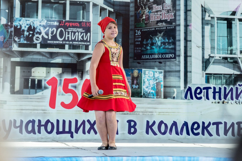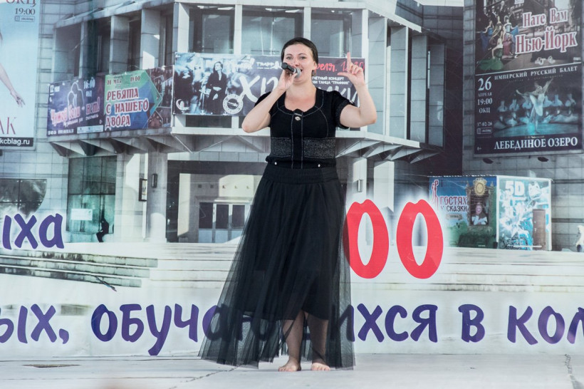 Амурчанка вышла на сцену в костюме шаманки-оленеводки. «Если костюм было найти несложно, то с шаманским бубном просто беда, — призналась местная певица. — Пришлось использовать емкость для холодца. Я с песней «Якутяночка» еще в школе выступала, причем пела ее на якутском».