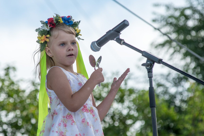Шестилетняя Александра Ковалева выступала с искусственными пирожками в корзинке.
