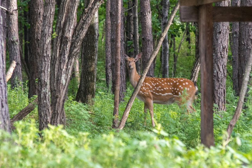 Спасенных питомцев выпускают на огороженную территорию размером почти в 100 гектаров. Обитателей природного зоопарка подкармливают — охотовед ежедневно оставляет на подкормочных площадках по 3 мешка гречки, овса, соевых бобов. Лесные поляны здесь засаживают соей и кукурузой — это дополнительный источник корма.