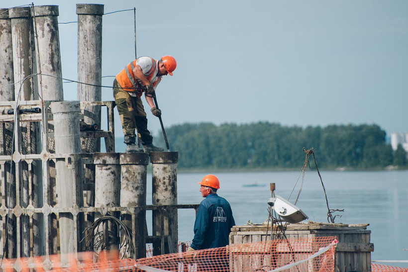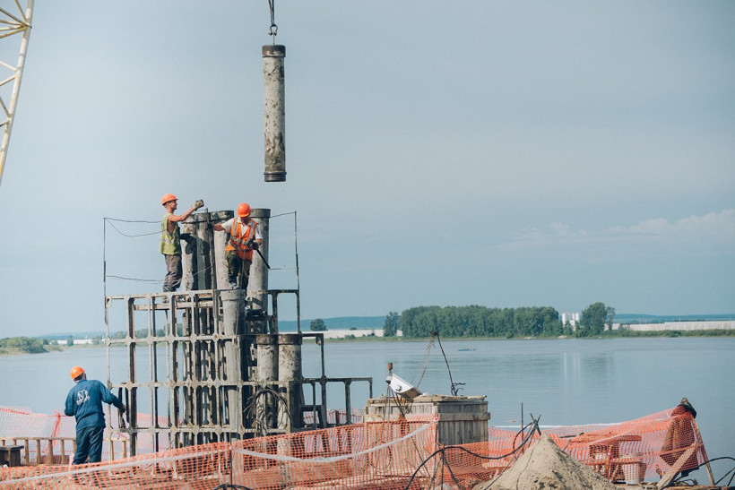 Сейчас в строительстве моста и подъездных дорог к нему участвуют 466 человек, а количество задействованной техники превышает 100 машин. Для размещения специалистов построены два общежития на 120 мест каждое, производственная база, столовая и баня. Кроме того, запущены два бетонных завода.