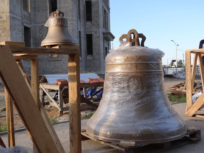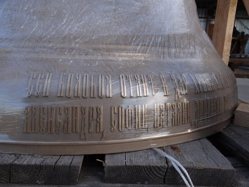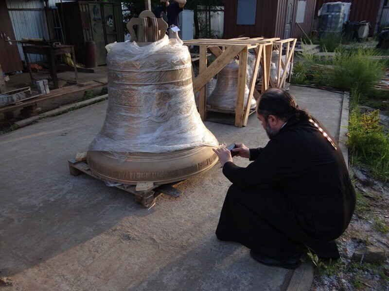 Колокола установят на высоте 20 метров. Все они пришли плотно завернутыми в пленку и зафиксированными на поддонах. Посылку сразу распаковали и ударили в самый маленький колокол, чтобы проверить звон.