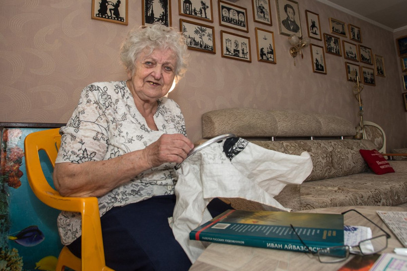 Каждый день в пять утра талантливая пенсионерка садится в зале у окна — там и свет ярче, и огромная коробка с нитками под рукой.