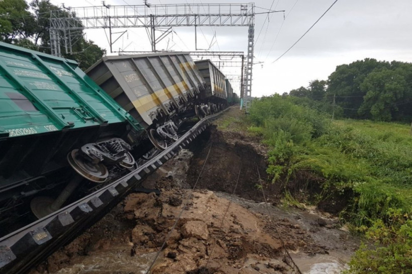 Сильные ливни в Приморском крае размыли железнодорожные пути на нескольких перегонах. По сообщениям приморских СМИ, сошли с рельсов грузовые вагоны в районе станций Баневурово и Раздольное. Из-за этого задержаны три пассажирских поезда, в том числе два — сообщением Хабаровск — Владивосток. Пострадавших нет.