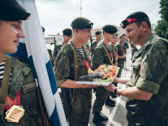 Двоковцев, которые победили Китай, Иран и Венесуэлу на международных играх «Морской десант», сегодня, 15 августа, чествовали в военном училище. Семи курсантам, двум прапорщикам-водителям боевых машин и офицеру, руководившему командой, торжественно вручили фаршированную щуку. Традиция угощать победителей рыбой появилась в прошлом году, после того, как курсанты ДВОКУ вернулись с триумфом со Всероссийских армейских игр, рассказал начальник учебно-методического отдела ДВОКУ Игорь Алпеев. Также в военном училище издали приказ о выражении команде благодарности.