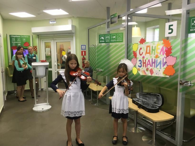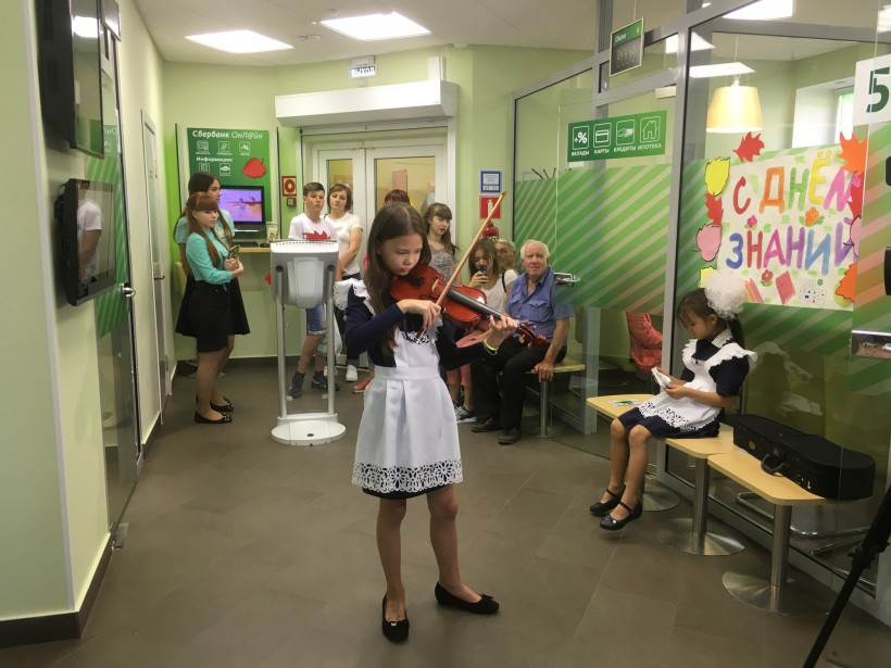 Юные посетительницы получили подарки и экспромтом дали концертЗайти в банк за кредитом или картой и попасть на скрипичный концерт, выиграть «счастливый талон» и получить сюрприз — из «бирюзового» офиса Сбербанка, где работают не ради показателей прибыли, клиенты часто уходят в приподнятом настроении. В День знаний в подразделении на Калинина, 76 сотрудники вручали подарки всем школьникам. Свидетелем импровизированного концерта юных скрипачек стал журналист «Амурской правды», который испытал на себе все плюсы нестандартной работы организации будущего.