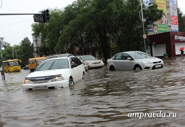 Сильный ливень, прошедший вчера, 5 сентября, в Благовещенске, доставил неприятности не только пешеходам, сотрудникам ЖКХ, но и автолюбителям. Во время поездки «железные кони» то и дело теряли государственные номера в бурных водных потоках.