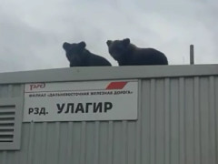 На разъезде Улагир медвежата забрались на крышу вагончика дежурной по станции
