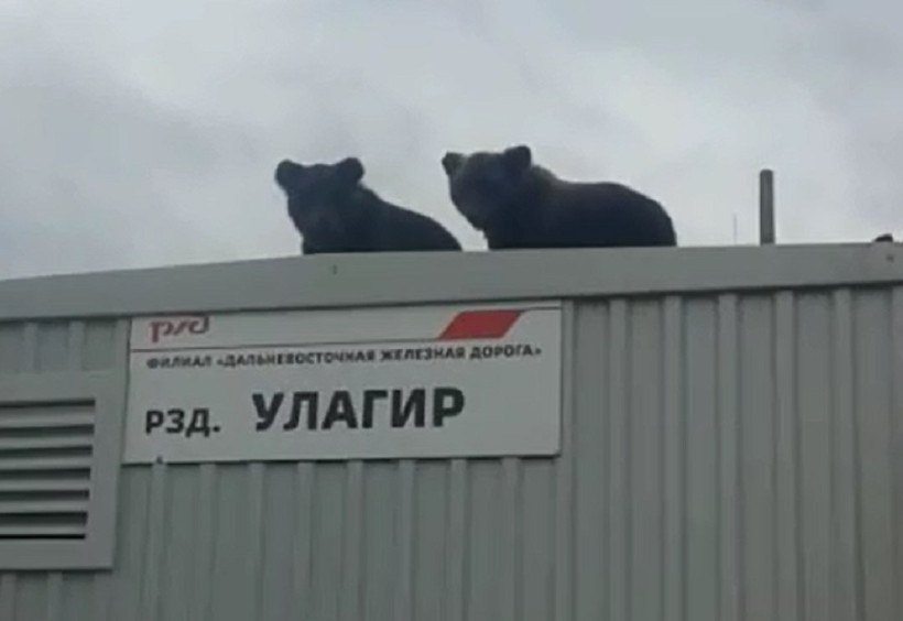 В Зейском районе медвежата забрались на крышу железнодорожного вагончика (видео)