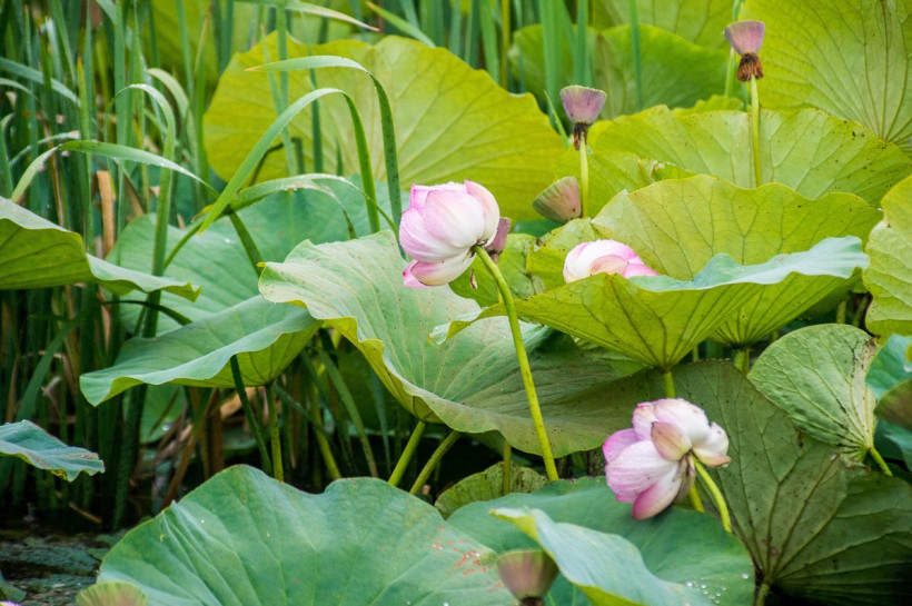 Пока же для защиты от ветра и дождя умные птицы используют лотосы, которые густо разрослись на озере.