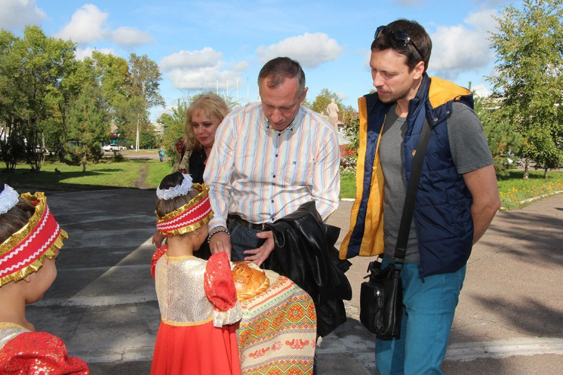 Эд Шульжевский решил прогуляться перед дорогой по берегу Амура, который всего в нескольких метрах от Дома культуры. «Комары у вас хорошие — злые», — отметил, вернувшись, артист.