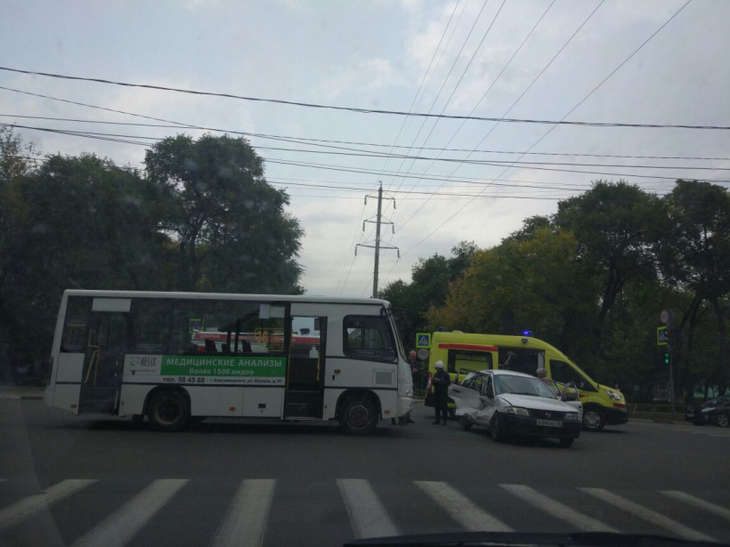 В Благовещенске рейсовый автобус столкнулся с иномаркой