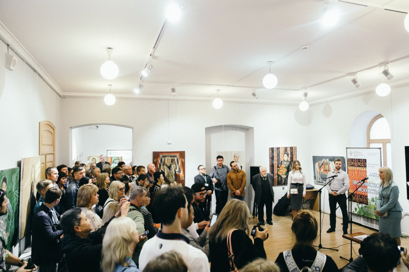 В этом зале тихо, несмотря на большое количество гостей. Это галерея посвящена памяти народного художника России, знаменитого оконописца Александра Тихомирова, недавно ушедшего из жизни. Вновь увидеть его работы пришла советская актриса Татьяна Конюхова.
