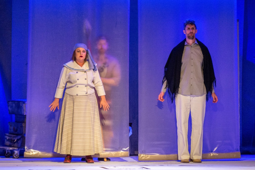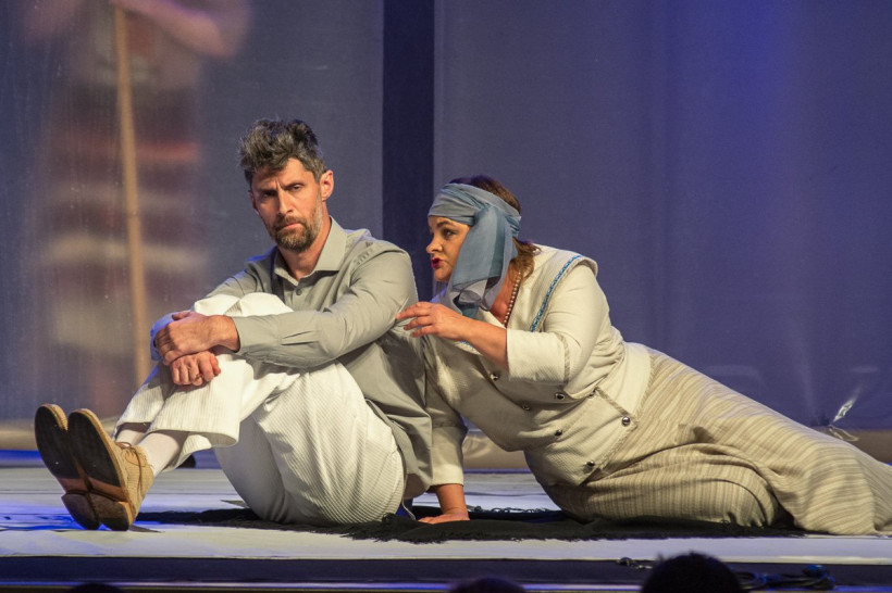 Всего на один день, только ради того, чтобы дать спектакль «Пленные духи» по пьесе братьев Пресняковых, прилетели в Благовещенск Анатолий Белый, Олег Долин, Григорий Данцигер и Дарья Екамасова. И они действительно оказались в плену. Застряли в московском аэропорту, где рейс на Благовещенск задержали на шесть часов. Зато как в классике: с корабля на бал. Изнуряющее ожидание, длительный перелет, смена часовых поясов не повлияли на потрясающую игру актеров. Да они и не играли вовсе — они жили на сцене.
