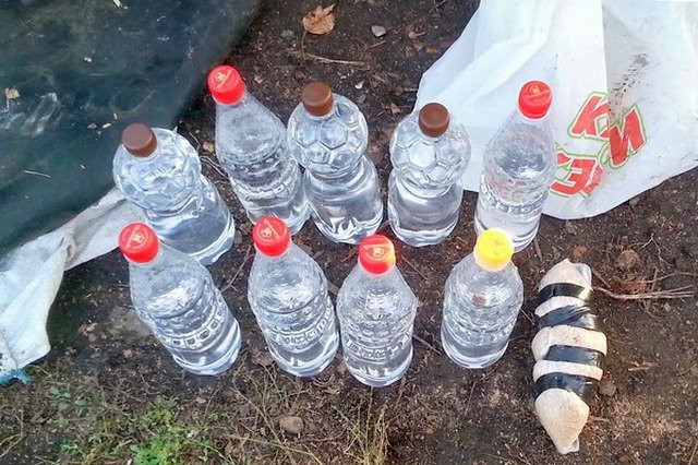 Спирт разлили по пластиковым литровым бутылкам. Кроме алкоголя в схроне находился пакет с дрожжами весом 500 граммов.