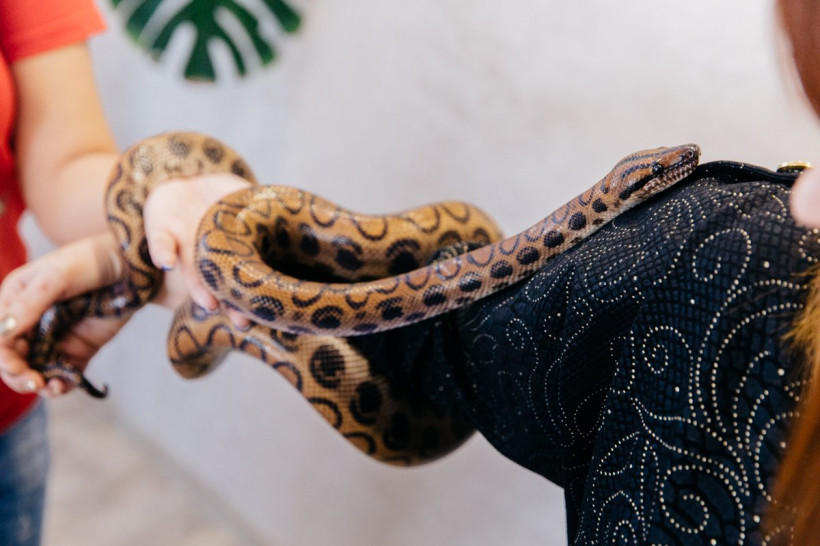 «Честно? Кардинально поменяла свое мнение на счет этих животных. То, что змеи не скользкие и не противные, я знала — сумка да сумка на ощупь. Главное было — преодолеть страх, особенно, когда она приближается к твоему лицу, высовывая раздвоенный язык. В начале интервью я стояла поодаль. К середине ради фото разрешила положить на себя хвост Рены. Но удав взял и переползл на меня целиком. Пара минут дикого страха, пара минут принятия ситуации — и вот змея уже пригрелась у меня на груди, а любопытный Шнурок обвился вокруг шеи. К концу интервью я в одной руке держала диктофон, а в другой — паука-птицееда».