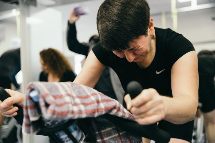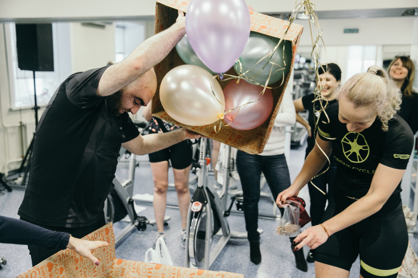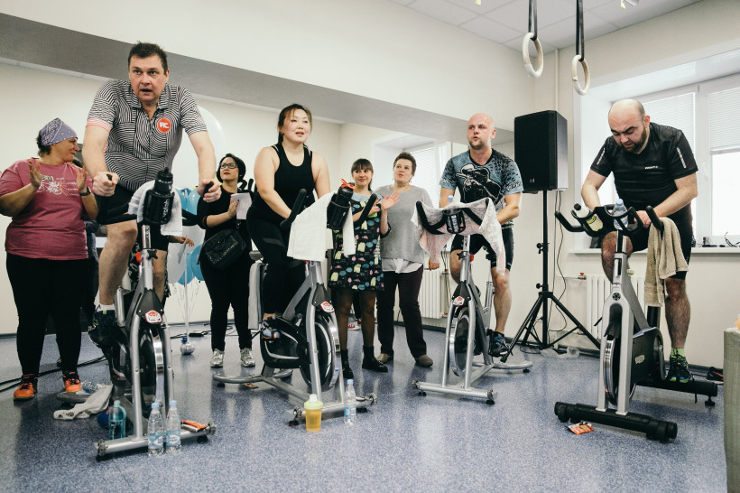 В назначенный день, 28 октября, на четырехчасовую дистанцию вышли 16 самых смелых и выносливых. Диджей, зажигательная музыка, группа поддержки и бешенная энергетика от сайклистов — градус эмоций в спортивном зале повышался час за часом. А они крутили педали, пели и даже танцевали на своих велосипедах. А когда отыграл последний трек, кричали, аплодировали, выжимали футболки, скидывали кроссовки, а некоторые просто падали на пол. По оценкам тренера, за марафон спортсмены проехали около 200 километров.
