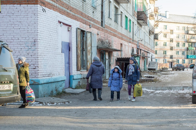 человек живут в заброшенном военными гарнизоне Возжаевки