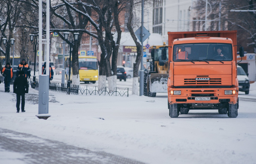 От заката до рассвета: уборка снега в Благовещенске идет круглосуточно (фоторепортаж)