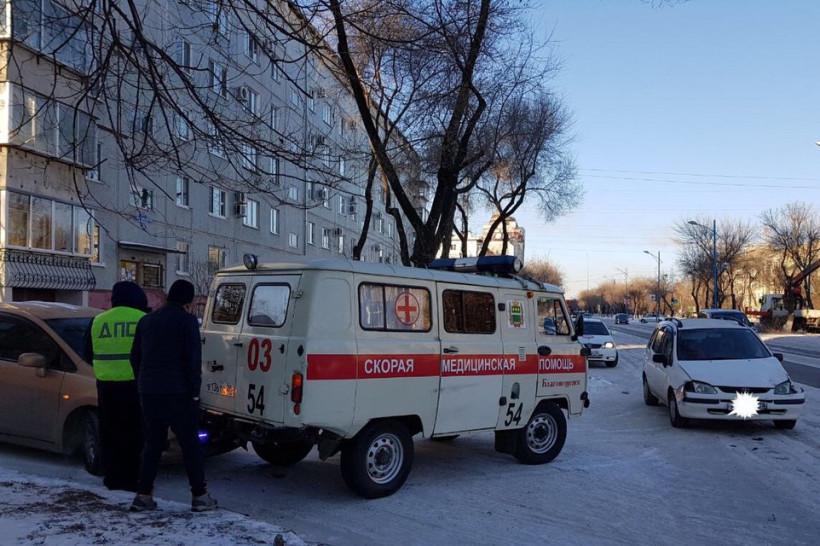 В центре Благовещенска автоледи врезалась в машину скорой помощи