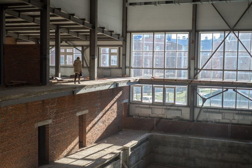 Сейчас строители ведут работы по установке перегородок внутри здания площадью 1500 кв. метров. На первом этаже будет размещаться универсальный спортивный зал, где, как ожидается, можно будет проводить соревнования по баскетболу, волейболу, гандболу, большому теннису, настольному теннису, мини-футболу, гимнастике, легкой атлетике. За спортивными состязаниями с трибун смогут наблюдать 250 зрителей. В здании также разместится 25-метровый плавательный бассейн для взрослых и детский учебный бассейн с ванной шесть на десять метров.