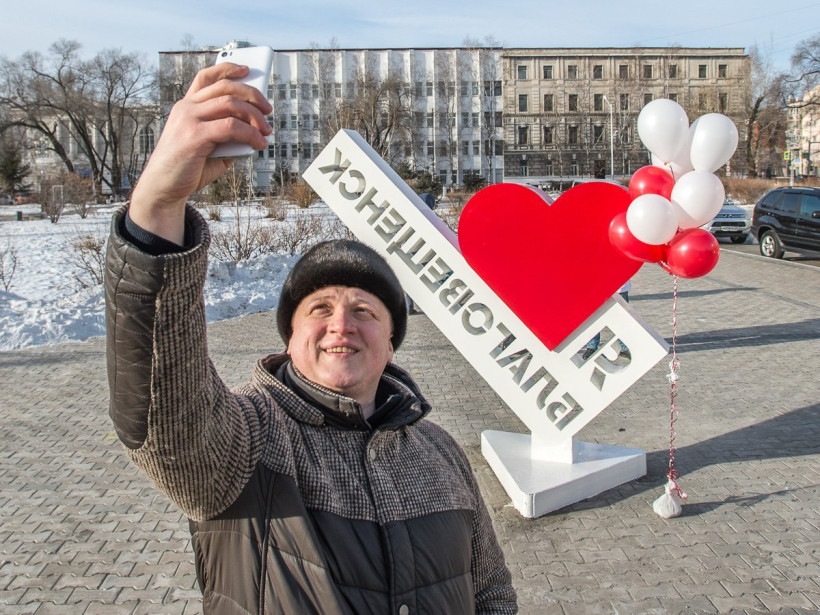 Благовещенск обзавелся растиражированным селфи-поинтом. Теперь в амурской столице тоже есть свой арт-объект «Я люблю Благовещенск». Неделю горожане следили за его изготовлением в соцсетях. «Лайк», обнимающий сердце, монтировали на площади Общественно-культурного центра последние три дня. А в среду, 20 декабря, торжественно открыли под залпы бутылок с детским шампанским.