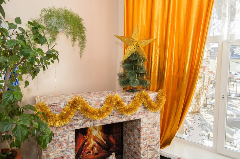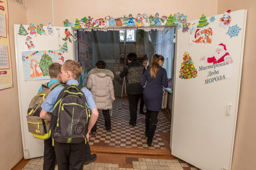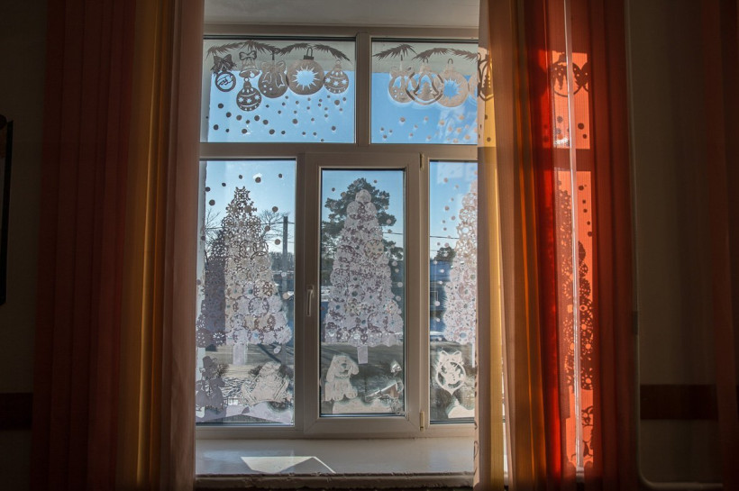 Среднюю школу в селе Ивановка превратили в настоящий терем Деда Мороза. Все окна большого трехэтажного здания с внутренней стороны расписали витиеватыми снежными узорами. Не повторяется ни одна снежинка или завитушка. А когда заходишь с мороза в теплое помещение учебного заведения, сразу попадаешь к камину с потрескивающими дровами отогреваться. Правда, камин нарисованный, как и очаг в каморке папы Карло, но чувства испытываешь самые настоящие.