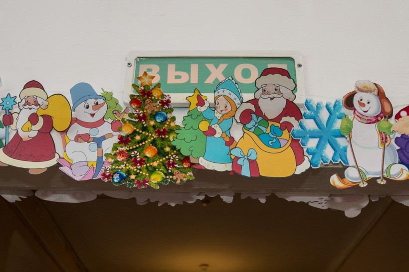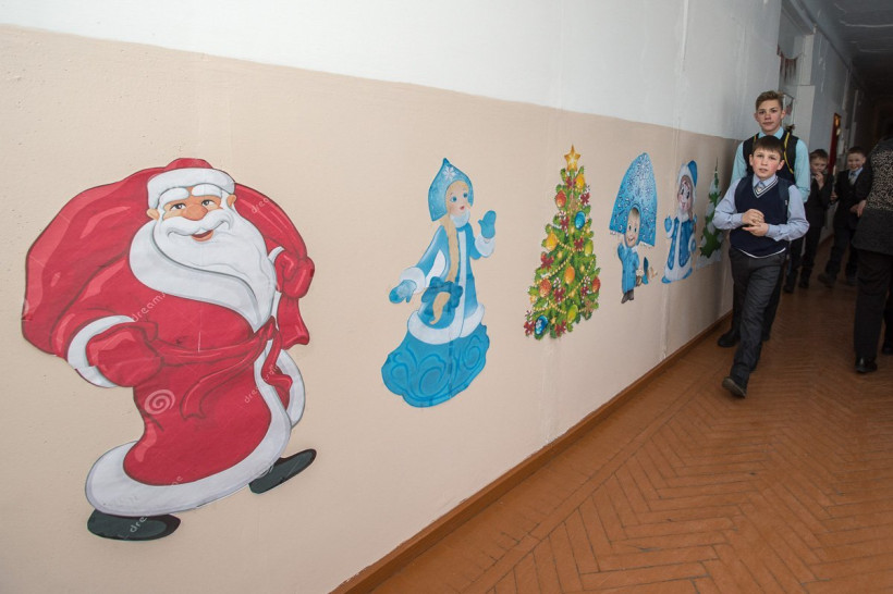 Новыми красками засияли и строгие школьные стены. Около кабинета математики порхают красногрудые снегири, у кабинета русского языка встречает снеговик, а дверь в класс географии напоминает чертоги снежной королевы.