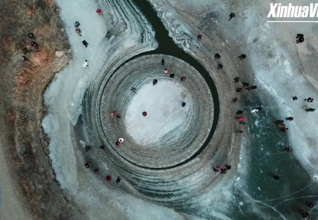 Мистический ледяной круг образовался на реке в Китае (видео)