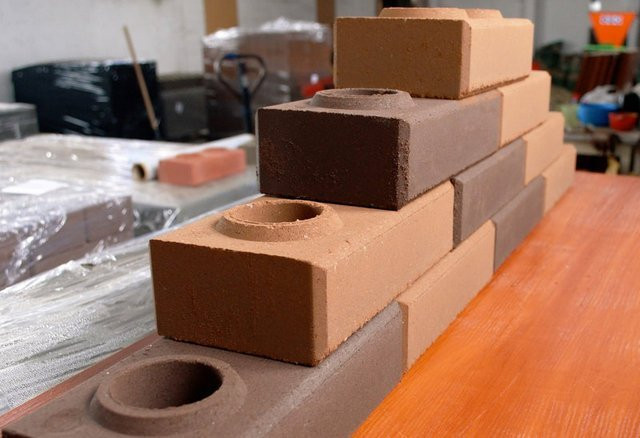 Лего-кирпич производится по технологии гиперпрессования. В нем есть специальные пазы, что сокращает сроки строительства. По техническим характеристикам материал не уступает привычному кирпичу.