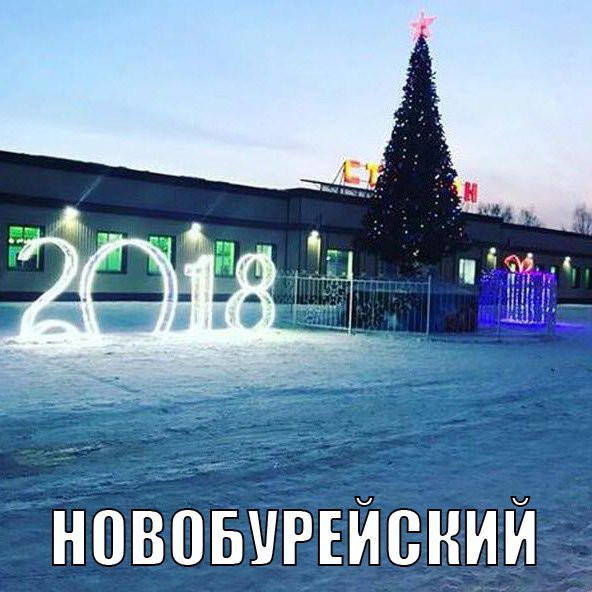 В городах и поселках покрупнее преобладали конусообразные елки. Современные, но, по отзывам наших читателей, не такие милые. На фото — Белогорск и Соловьевск.