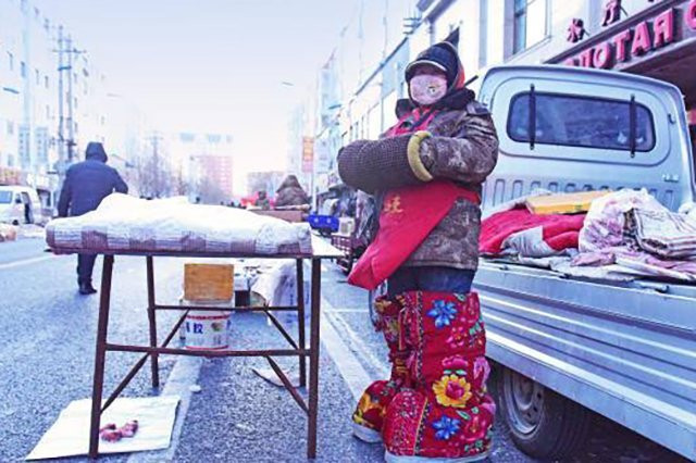 Продавщица баранины из Хэйхэ привлекает туристов со всего мира своим необычным нарядом. Женщина выходит на утренний рынок в огромных красных унтах в цветочек. Китаянку можно понять: работать ей приходится почти при 40-градусном морозе, пишет издание China.org.cn.