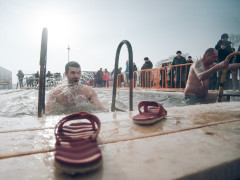 Несколько тысяч благовещенцев нырнули в прорубь на Крещение. Для одних нынешние купания стали первыми в жизни, другие уже не первый год закаливают свой организм в церковный праздник. В столице Приамурья работают две купели — на реках Амур и Зея. Иордань на Зее в районе Амурской, 1 из года в год пользуется популярностью. Мероприятие посещают около 20 тысяч человек. Часть горожан окунулась в ледяную воду еще в ночь на 19 января. Людей не смутили ни время, ни мороз: ночью термометры показывали -23... -24 градуса. Остальные пришли к купелям днем. За купаниями наблюдал фотокорреспондент «Амурской правды» Дмитрий Тупиков.