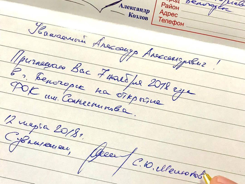 В проекте «Обратись к губернатору» принял участие мэр Белогорска Станислав Мелюков. Он заполнил бланк обращения, но не стал писать в нем о проблемах города. Вместо этого Станислав Юрьевич пригласил главу региона Александра Козлова на долгожданное открытие физкультурно-оздоровительного комплекса имени Солнечникова.
