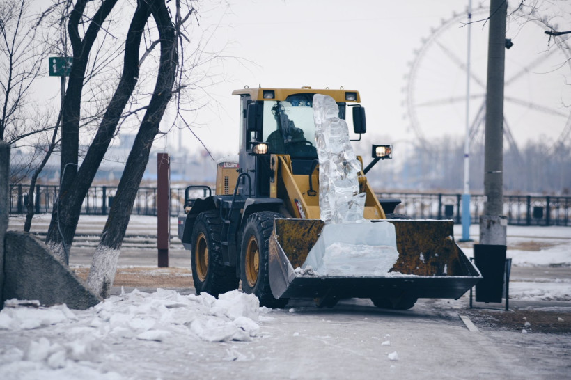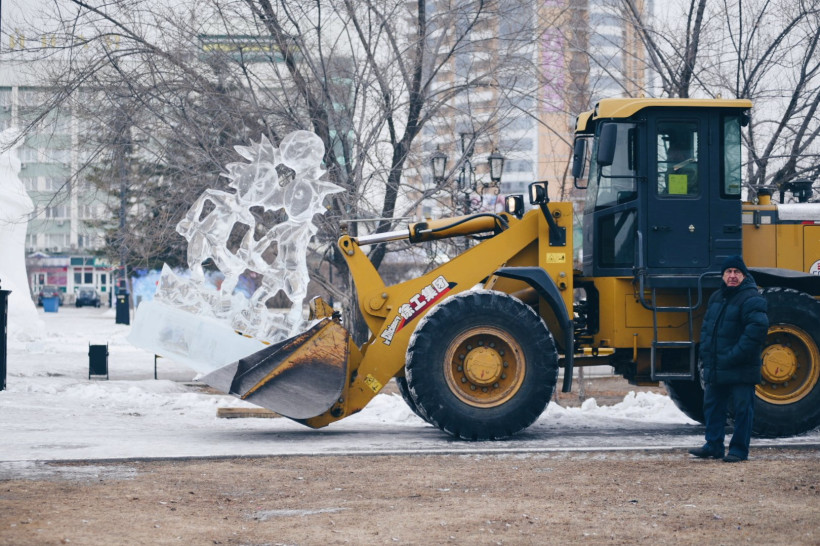 В Благовещенске тракторами сносят снежный городок и ледовые скульптуры (видео)