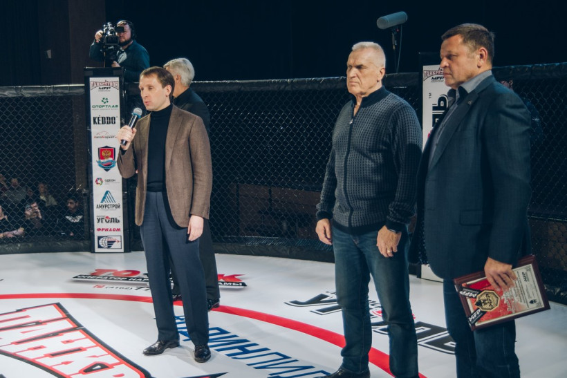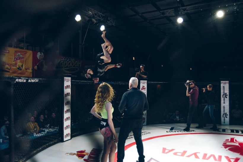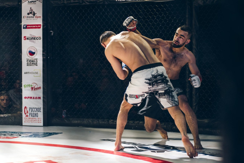 Бойцы смешанных единоборств сошлись в поединках на Grand Arena Ostrova в Благовещенске. В столице Приамурья прошел «Вызов Амура» на Кубок губернатора Амурской области. Благовещенских спортсменов в этом году тренировал бразилец Алисон Маркес. В октагоне сошлись бойцы из Приамурья, городов Дальнего Востока, Баку и Челябинска. Главный поединк состоялся между бойцом областной Федерации смешанного боевого единоборства Евгением Зливко и спортсменом из Харбина Машуянгом. Во втором раунде китаец применил болевой прием на ногу и одержал победу над благовещенцем. Самые яркие и зрелищные моменты боев — в фоторепортаже Дмитрия Тупикова.
