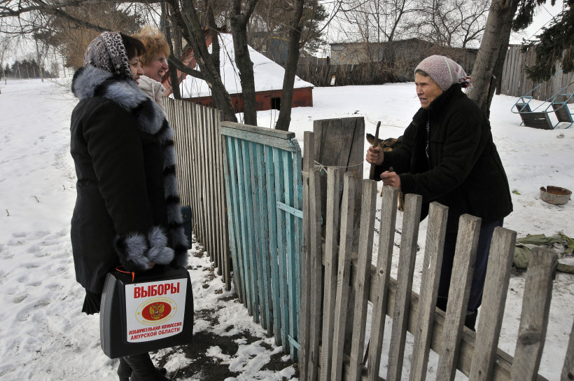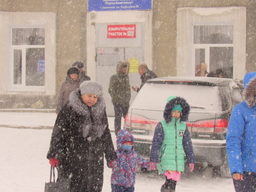 «У нас с утра настоящая метель, но на избирательном участке целая очередь из желающих проголосовать. Народ голосует активно», — рассказала «Российской газете» глава села Бомнак Зейского района Марина Подолько. Сильный снегопад и в Завитинском районе.
