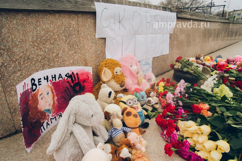«Хватит наживаться на детях»: благовещенцы несут цветы и игрушки в память о погибших в Кемерове
